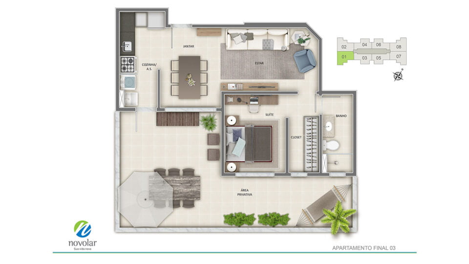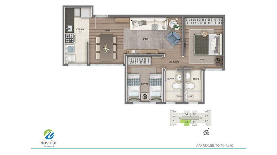• Apartamentos de 2 e 3 quartos com suíte