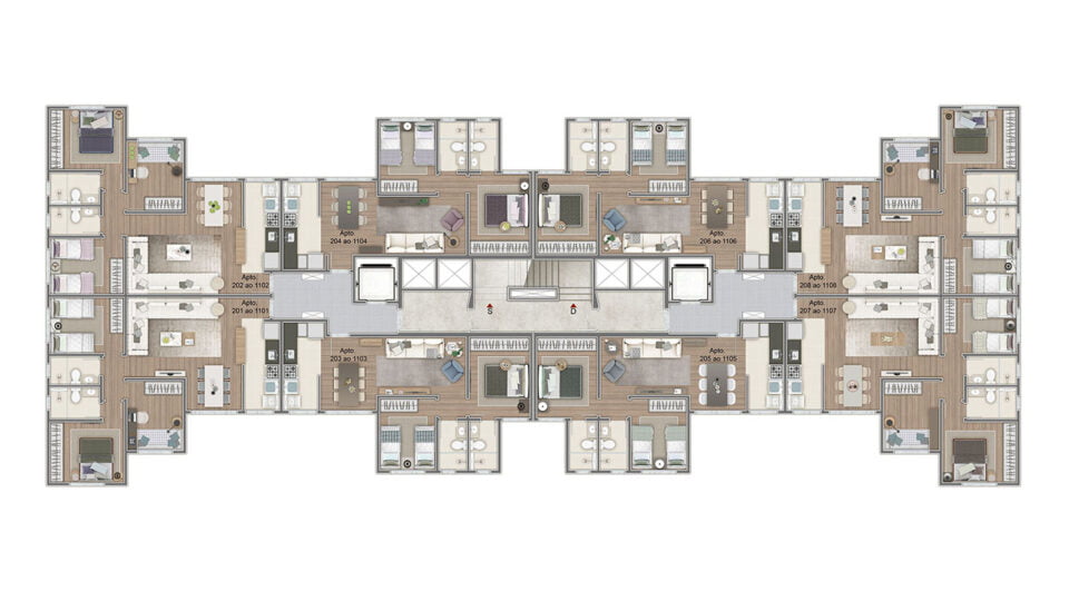 • 4 torres de 11 pavimentos cada