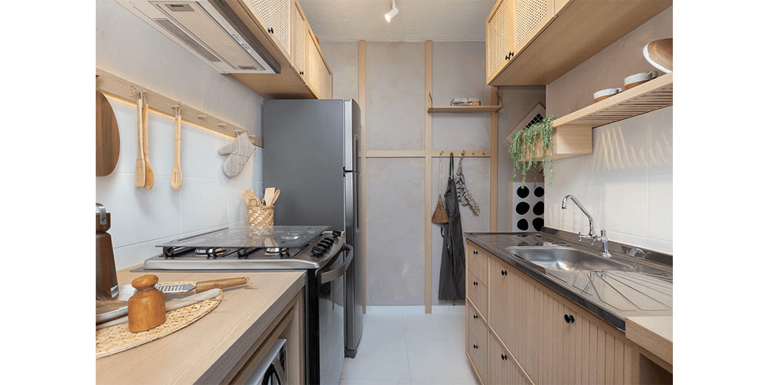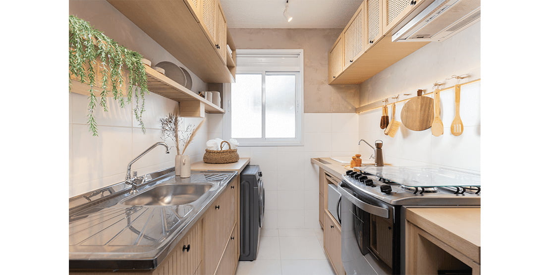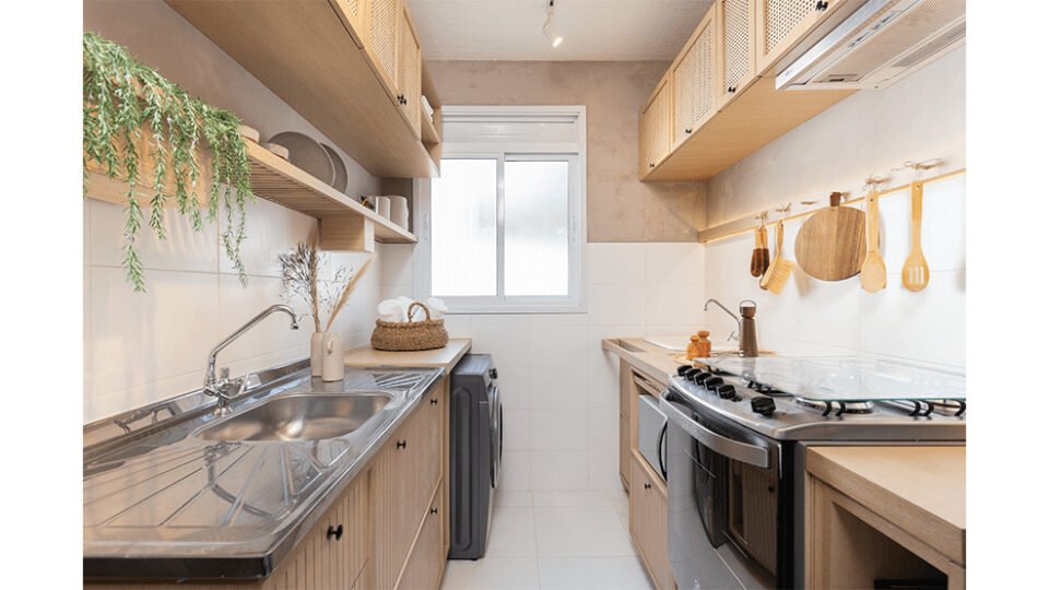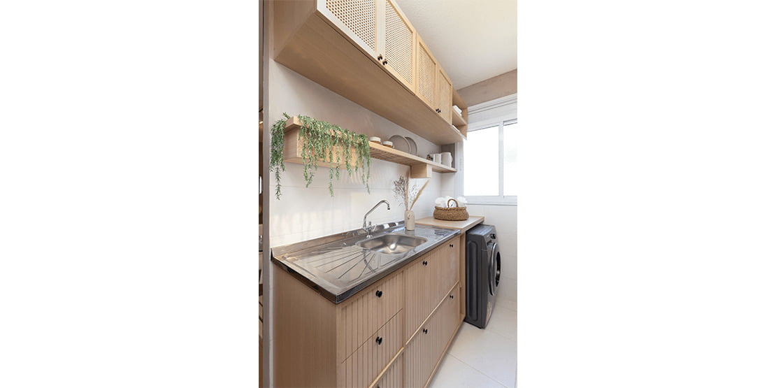 • Maior área revestida na cozinha e área de serviço