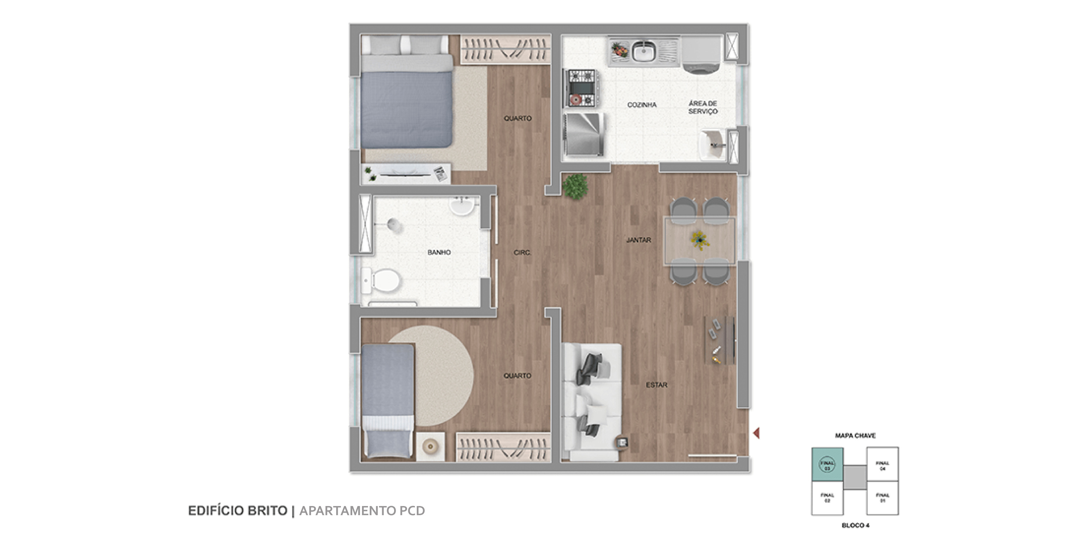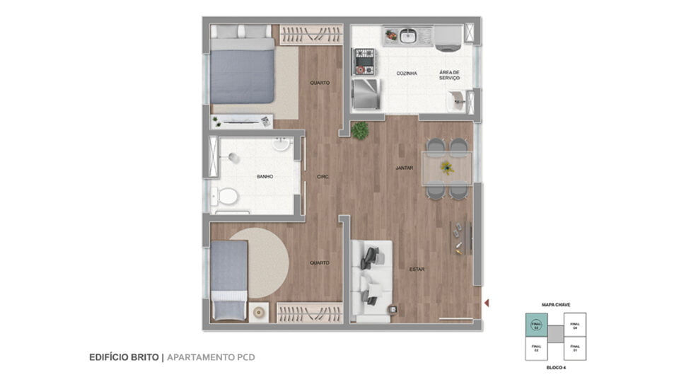 • Bloco 4 (PCD): Unidades de 48 m²