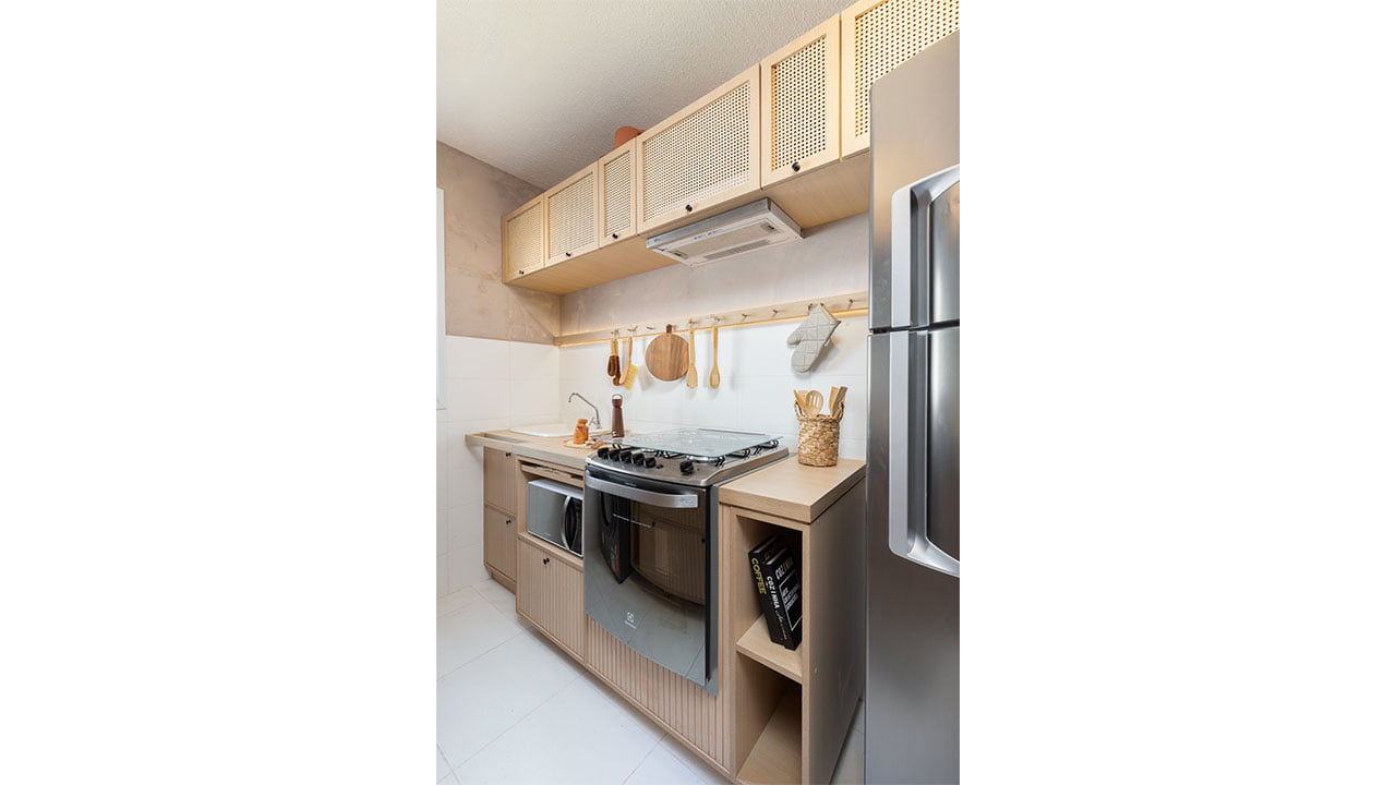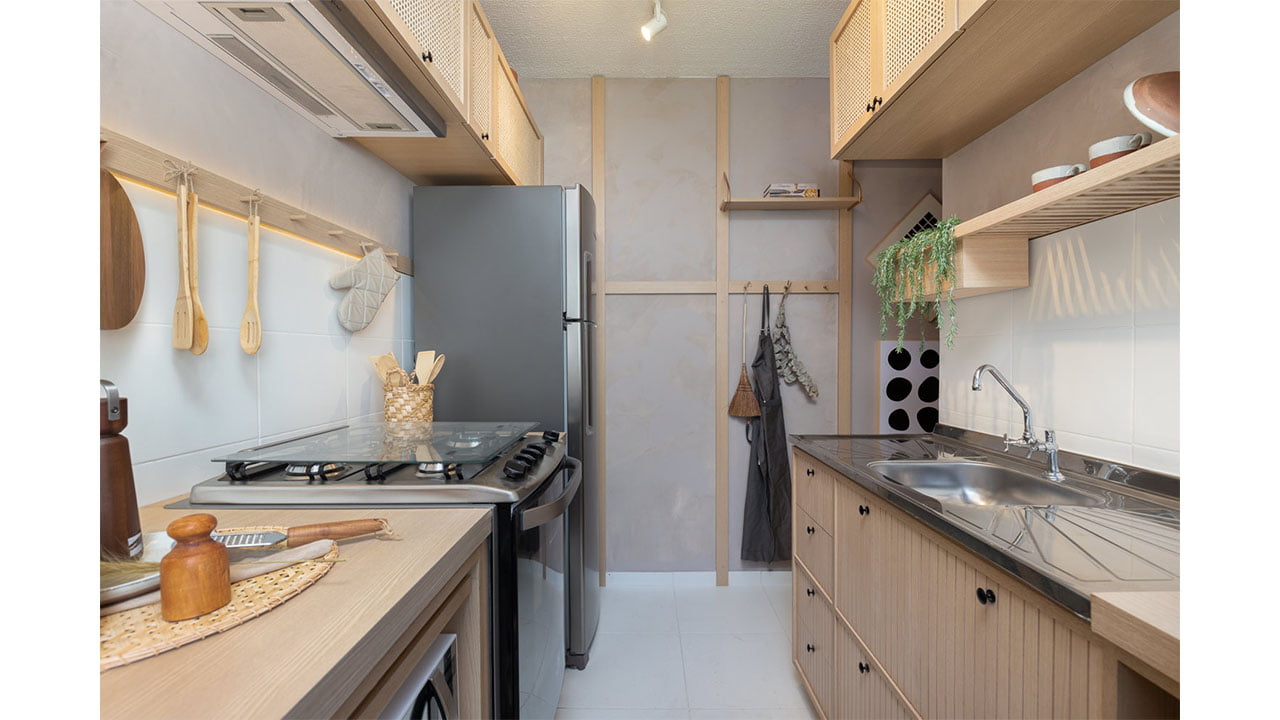 • Maior área revestida na cozinha e área de serviço