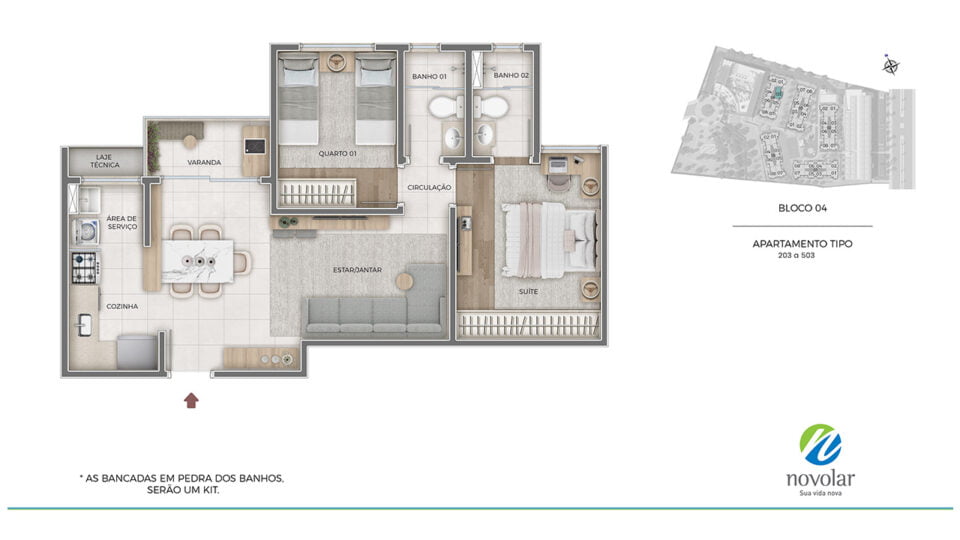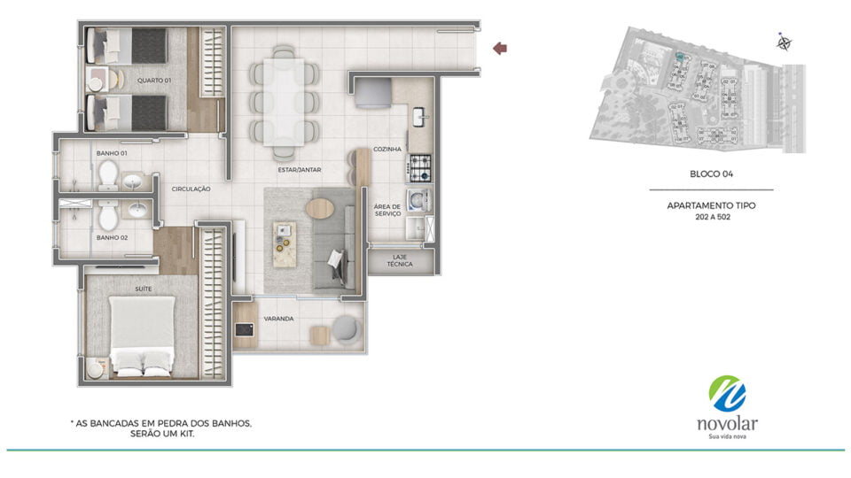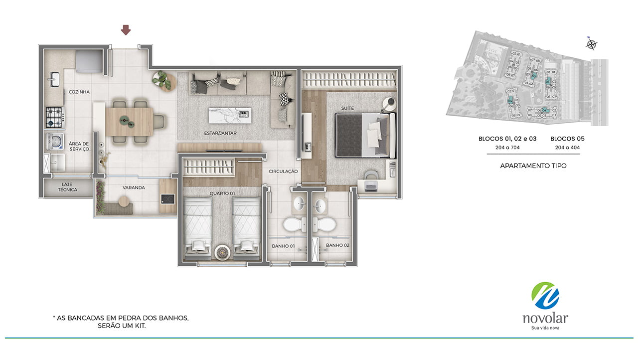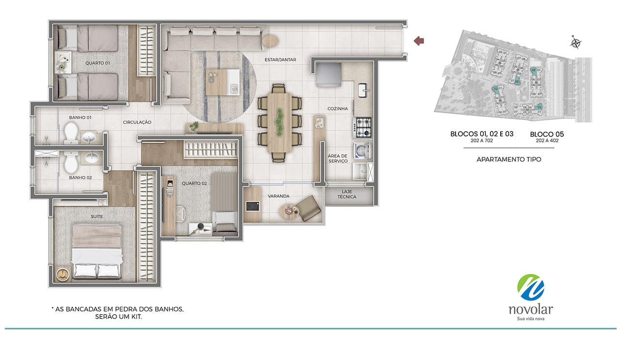 • 08 apartamentos 3 quartos com área privativa - 84 m²